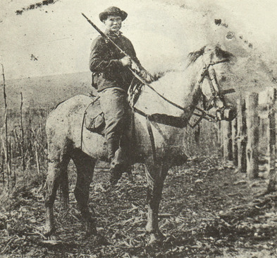 Thrailkill’s Battalion (C.S.) – Confederate soldiers of John “Coon” Thornton’s army rode to battle but fought on foot. Sabers, carbines, and basic Cavalry gear were scarce. Most used long Infantry weapons such as the Enfield Musket and revolvers. The above wears a civilian style jacket and trousers with vest. His legs are wrapped with rags to protect them while riding. Mounted & dismounted cavalry Re-enactors will be portraying Thrailkills battalion and will get to fight as their own battalion of dismounted Cavalry. If possible they are asked to wrap their legs up with period rags, cloth, or burlap bags to give an impression that the horses have been left to the rear while they advance to fight.